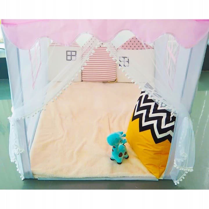 ✔️ marzenie każdej małej księżniczki - stylowy, materiałowy domek z różowo-białymi lampkami LED (3 metry długości!), podłogą, tasiemkami do wiązania drzwi i siateczkowymi okienkami tworzy idealne miejsce do zabawy, czytania bajek i relaksu